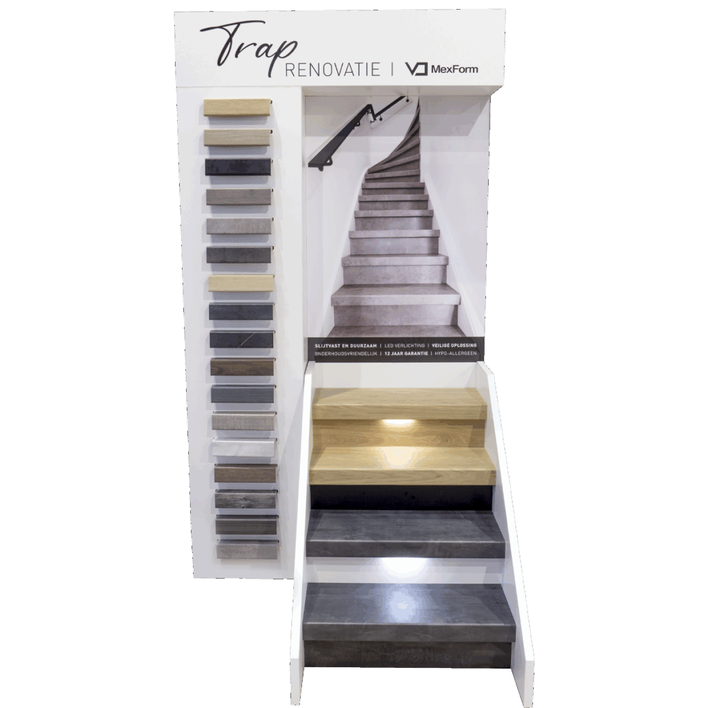 Natuurlijk zijn er ook de laminaat en pvc treden mogelijk van onder meer K Stairs, Trenovo en Mexform